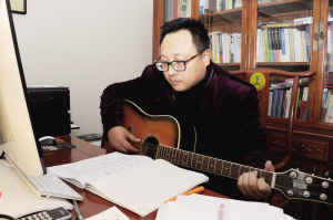 “來太倉,一方面因為我是常熟人,太倉算是我比較熟悉的一座城市,另一方面是因為我最好的朋友在這里。來到太倉以后,我發(fā)現(xiàn)這座擁有深厚文化底蘊而又安靜的城市特別適合靜下心來搞創(chuàng)作?!标悅ジ嬖V記者,2009年,初到太倉的他,租住在長春南路附近某老小區(qū)的車庫內(nèi)。不到20平方米的空間里,擺放著幾件簡單的家具。一把吉他、一臺電腦、幾張紙、一支筆,就是陳偉的全部創(chuàng)作工具。