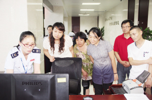 國稅工作人員向納稅人代表演示納稅申報流程。