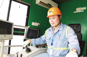 想學(xué)門機(jī)不輕松。門機(jī)是碼頭行業(yè)最難學(xué)的機(jī)械之一,普通的平面運(yùn)輸機(jī)械兩個(gè)月就能學(xué)會(huì),而門機(jī)最起碼需要一年。在家人的支持下,他從學(xué)徒做起,慢慢掌握了門機(jī)操作技巧。