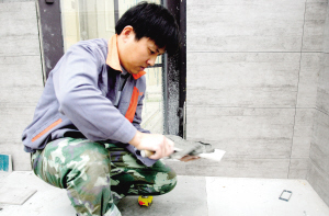 汪立治告訴記者,他15歲開始就跟著父親學(xué)泥瓦匠,做了3年后,又開始學(xué)鑲貼,到現(xiàn)在做鑲貼工也有20多年了。他說,以前的鑲貼施工很簡單,一是鑲貼的材料品種少,二是業(yè)主追求的鑲貼效果也比較簡單,但現(xiàn)在一套別墅裝修下來,鑲貼用的材料有幾十種,每種鑲貼都有講究,全靠自己琢磨。