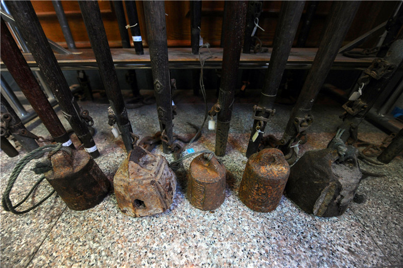 他家里,最大的桿秤2米多長,可稱重1000余斤,需要4個人扛抬才能稱重