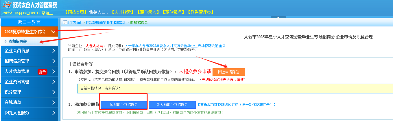 2、人才網(wǎng)線上申請(2025太倉夏季現(xiàn)場招聘會企業(yè)參會指南)